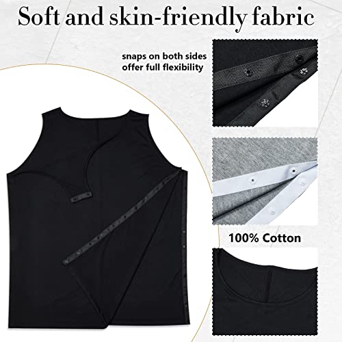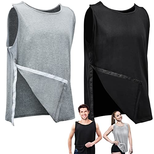 2 Pcs Post Surgery Shirt Unisex Shoulder Surgery Shirts Left and Right Side Snap Access Breathable Cotton Recovery T Shirt