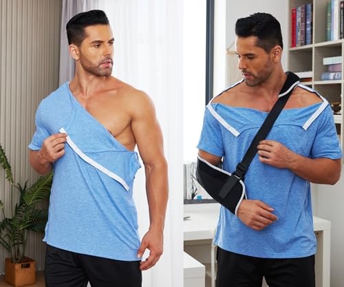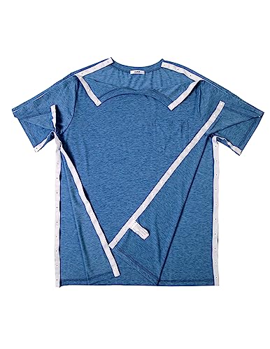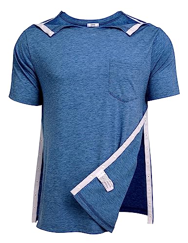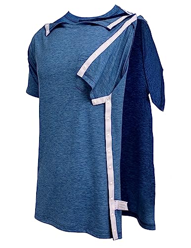 Deyeek Men’s Post Shoulder Surgery Shirts Recovery Tear Away Short Sleeve Full Open Side Snap Adaptive Chemo Clothing
